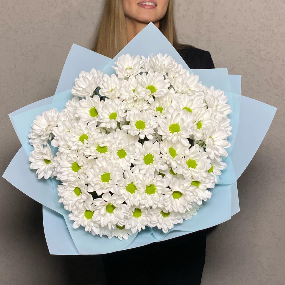 Шикарный, пышный, большой, стойкий – все это о букете из кустовой хризантемы! Ромашка – символ семьи, любви, верности, милой простоты и нежности!