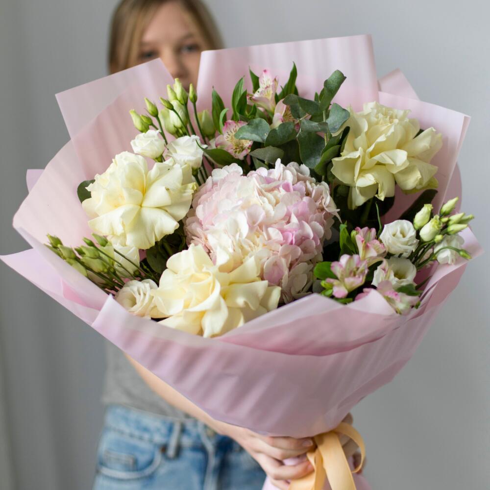 Авторский Букет из Роз, Альстромерии, Гортензии и Лизиантуса в Мантурово